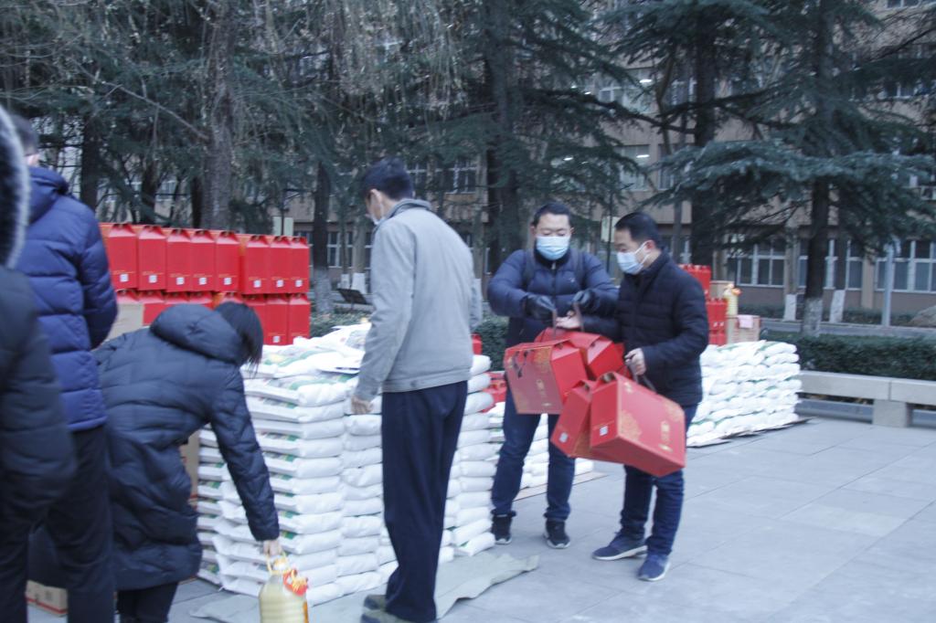 一大早,校工会与永寿县工作人员冒着严寒已经按照每个部门工会摆放完毕,福利发放的井然有序,工作人员认真核对每件物品,确保发放的每一件物资都要准确无误的送到每个教职工的手里。