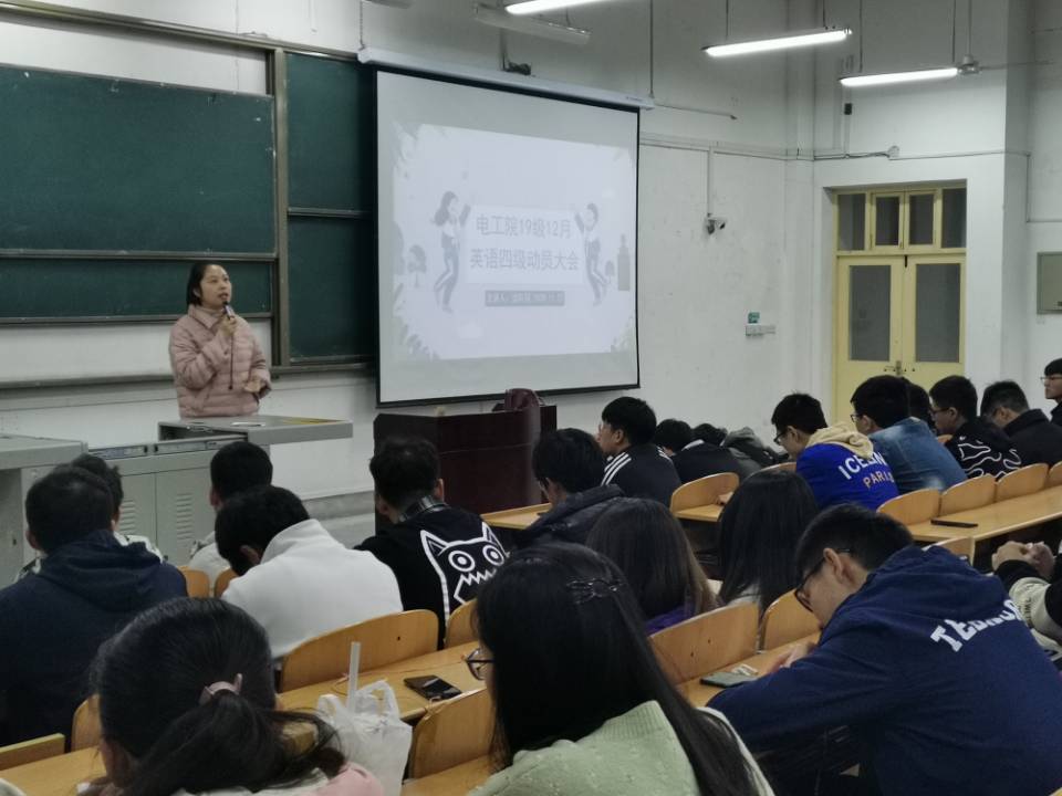 2019级辅导员沈轩羽老师以及220余名即将参加12月英语四级考试的学生参加了此次动员大会。此处大会旨在鼓励学生积极备战12月的英语四级考试,在有限的时间内更好的安排学习备考计划。