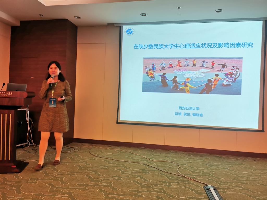 学生心理成长指导中心主任肖琼教授在会议上做了《在陕少数民族大学生心理适应状况及影响因素研究》的报告。这个研究是肖琼教授带领其研究生及油缘心理团队,在学生工作部(处)思想教育科少数民族学生工作办公室、各院系的积极配合下完成的,从文化认同、社会支持、个性特质三个因子分析少数民族学生在内地高校的心理适应状况,提出了构建少数民族大学生社会支持系统,鼓励其积极寻求社会支持;觉察自身的情绪性倾向,优化良好人格特征;培养整合性文化认同态度,提高心理适应水平等策略。