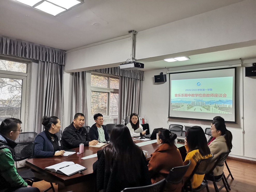 11月12日上午,音乐系在系三楼会议室召开了期中教学检查教师和学生座谈会。校督导杨美萍、张保平、史俊,系督导何云、张欣以及系教师和学生代表参加了此次座谈会。座谈会由系副主任张帆主持。