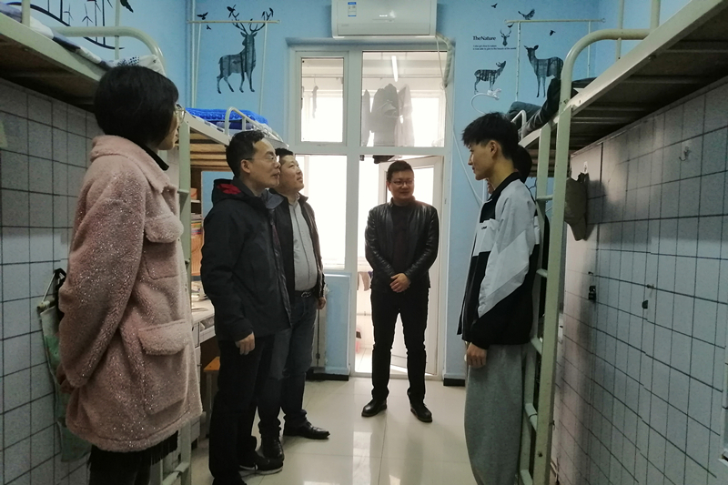 党委副书记张建高带领各年级辅导员深入2019级学生宿舍开展冬季安全检查工作。张建高副书记一行深入学生宿舍区,详细检查了学生宿舍的内务卫生和安全情况,并针对宿舍用电安全、违规用电器和易燃易爆等安全隐患进行了排查。