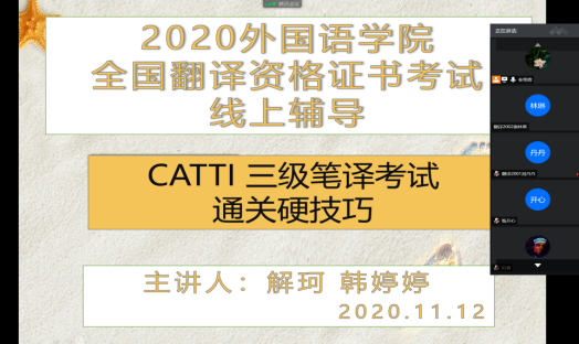 通过腾讯会议平台,举办了全国翻译资格证书三级笔译考试线上辅导讲座。本次讲座由外国语德州扑克