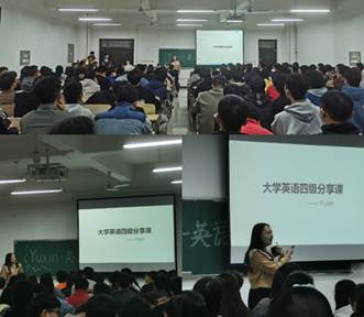 本次培训涵盖英语听力应试、长难句分析、作文题型三方面的内容,并结合工科生的思维特点规划了四级考试中各个题型的答题时间。在强调四级考试重要性的同时,也利用高考题型这个同学们耳熟能详的实例,与四级考试相结合,使同学们对四级词汇更了解,对四级题型更熟悉,对四级考试更自信。