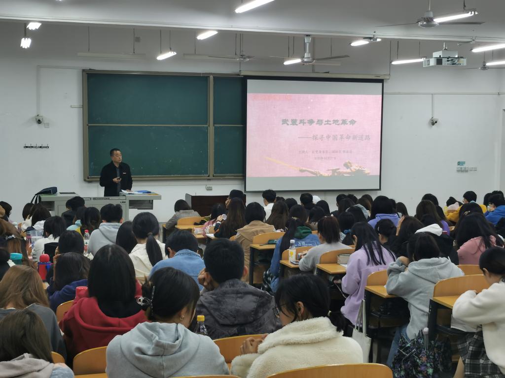 10月27日晚,程永清副校长以《武装斗争与土地革命——探索中国革命新道路》为题,在鄠邑校区教学B区114教室为人文德州扑克
