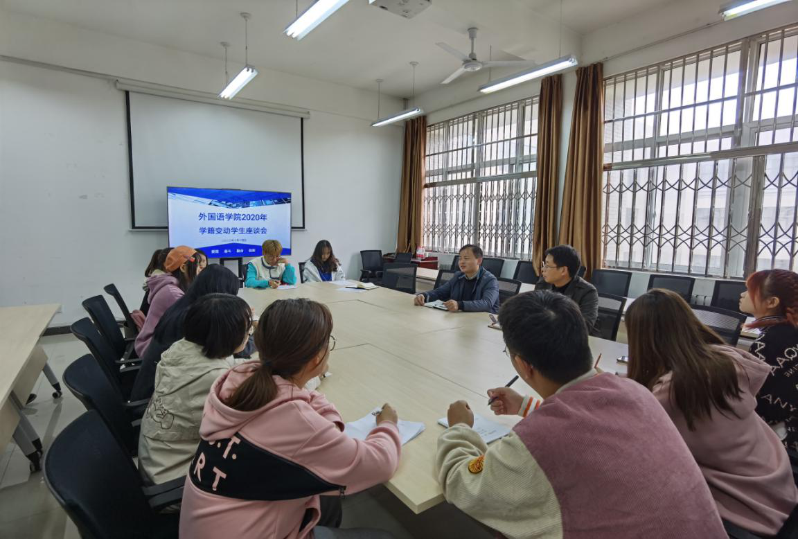 党委书记蔡强、副书记王业青、2020级辅导员陈浩和通过转专业转入2020级的17位同学参加座谈会。会议由王业青副书记主持。