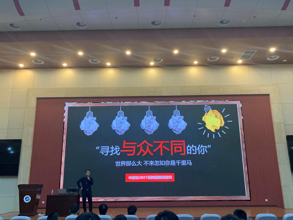 报告结束后,西安中服软件有限公司运营总监吕蒙、普联软件股份有限公司西安分公司总经理刘宗庆从公司概况、德州扑克、企业员工培养模式、企业目前的发展状况及发展前景与同学们作了分享,并宣讲了2020年企业校招。