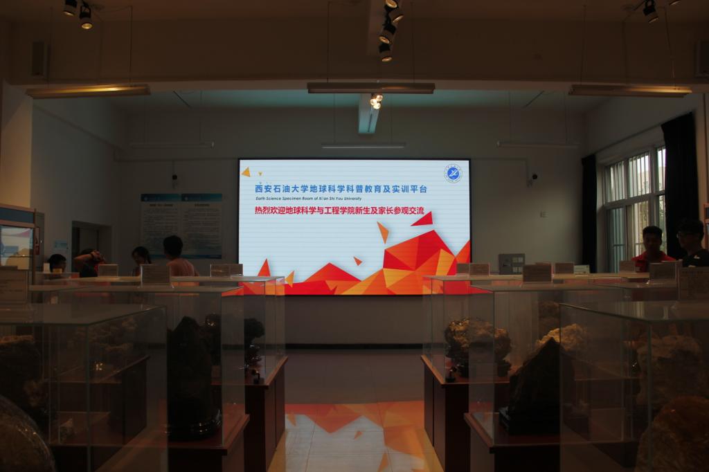 科协在鄠邑校区逸夫楼的地球科学与工程科普教育及实训平台共同举办了主题为“物华天宝,钟灵毓秀”的岩石标本科普展。