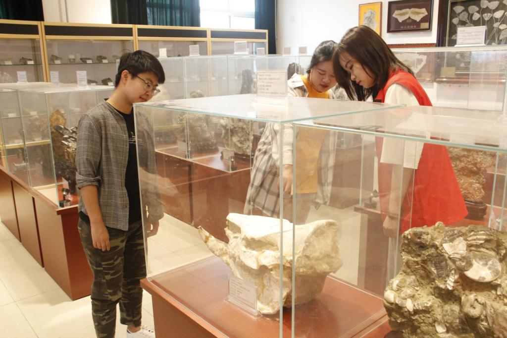 勘探1703团支部和岩石协会的同学担任志愿讲解员。本次展出的标本主要有各种常见的造岩矿物,三大岩类的特征岩石以及构造标本,吸引了多位新生及家长前来参观学习。志愿讲解员们为大家讲解地学知识,指导同学们如何识别不同的标本,让更多人了解地球生命历史、感受地学之奥妙,探寻生物灭绝原因,感受矿物岩石之美。
