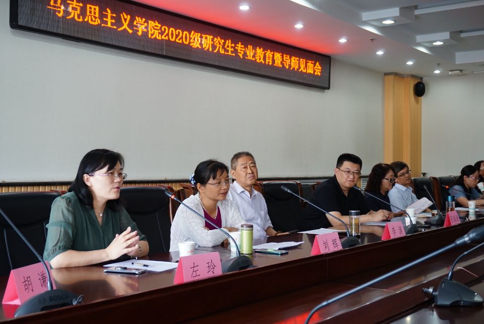 每位同学逐一自我介绍,每位与会硕士生导师也语重心长地寄语新生。王晓方教授从思想高度、理论深度、视野宽度和人生温度四个方面,希望同学们提高政治站位,多读经典原著,从实际出发、从点滴小事做起,逐步加深学养的积累。