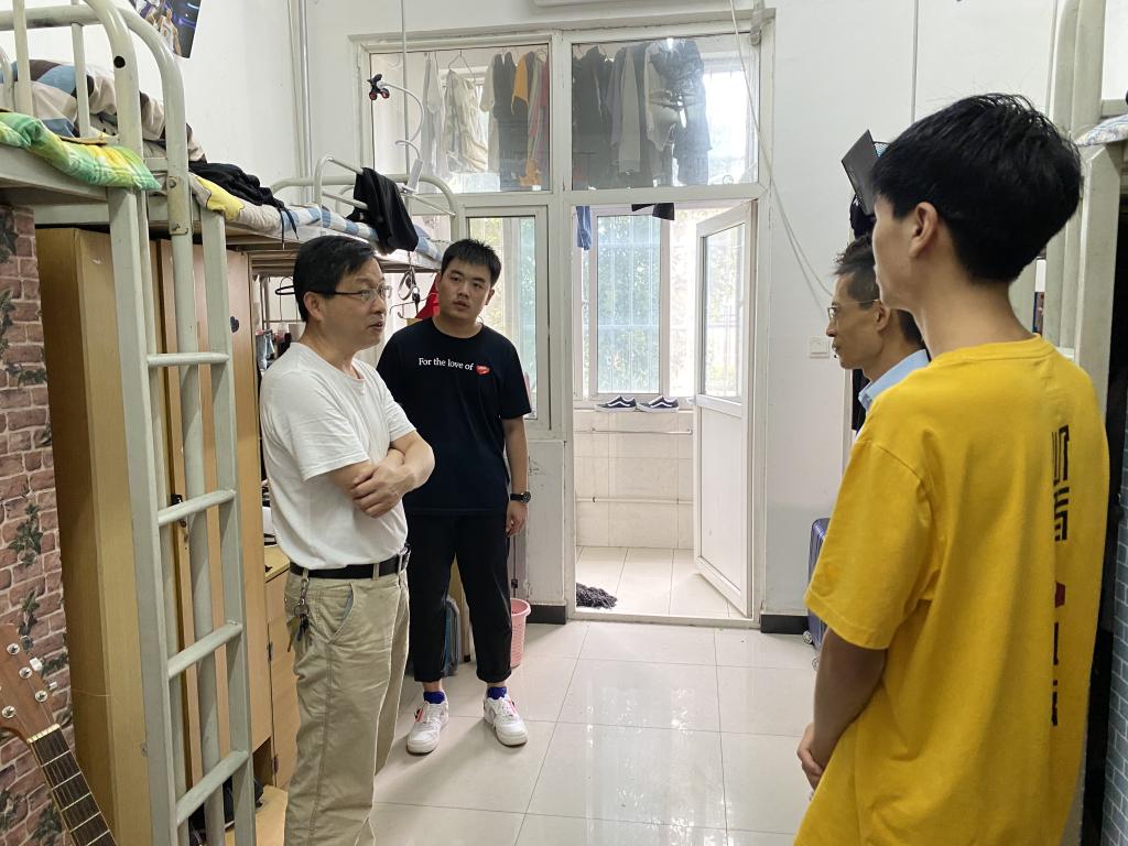 党委书记蔡建文,党委副书记董春诗等一行深入学生宿舍,看望慰问返校学生。
