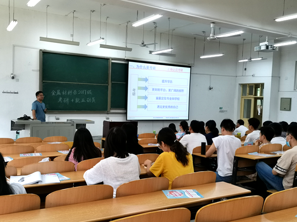 金属材料工程专业2017级考研动员会由系主任雒设计主持,雒老师从“为什么要考研、如何应对考研、如何选择考研的目标、如何准备复试与面试”等六个方面给大家做了详细的讲解,希望每位同学能针对自身的特点制定详细的学习计划和选择报考院校,珍惜青春年华,努力奋斗,实现自己的理想。金属材料工程专业2016级考研优秀学生代表贺敬之、王亚杰、韩茜婷、张姗姗同学从备考复习、院校选择、时间安排、心态调整、复试准备等方面分享了自己的心得体会。金属材料系的教师结合自身的经历及体会为2017级学生建言献策,提出了宝贵的建议。