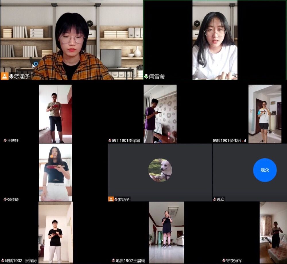 团委举办线上趣味运动会,体育部罗涵予、闫雪莹主持,体育部成员组成裁判组,团委书记邱岭老师参会,60多名学生报名参赛。
