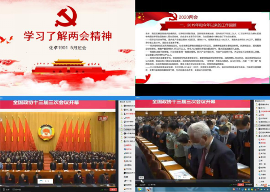 各年级班团、党支部,团委及学生会认真落实、精心筹划,疫情当前通过线上党支部会议、团课、主题班会等形式,组织师生认真学习领会2020年全国“两会”精神,积极开展学习 “两会”精神主题活动,通过实际行动彰显当代大学生的青春本色。