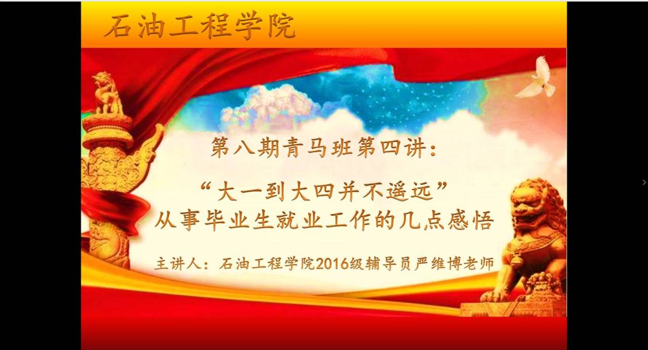 2016级辅导员严维博老师为大家作了题为“大一到大四并不遥远”的主题培训,并与同学们分享了从事毕业生就业工作的几点感悟,2019级120余名学生干部参加了此次培训活动。