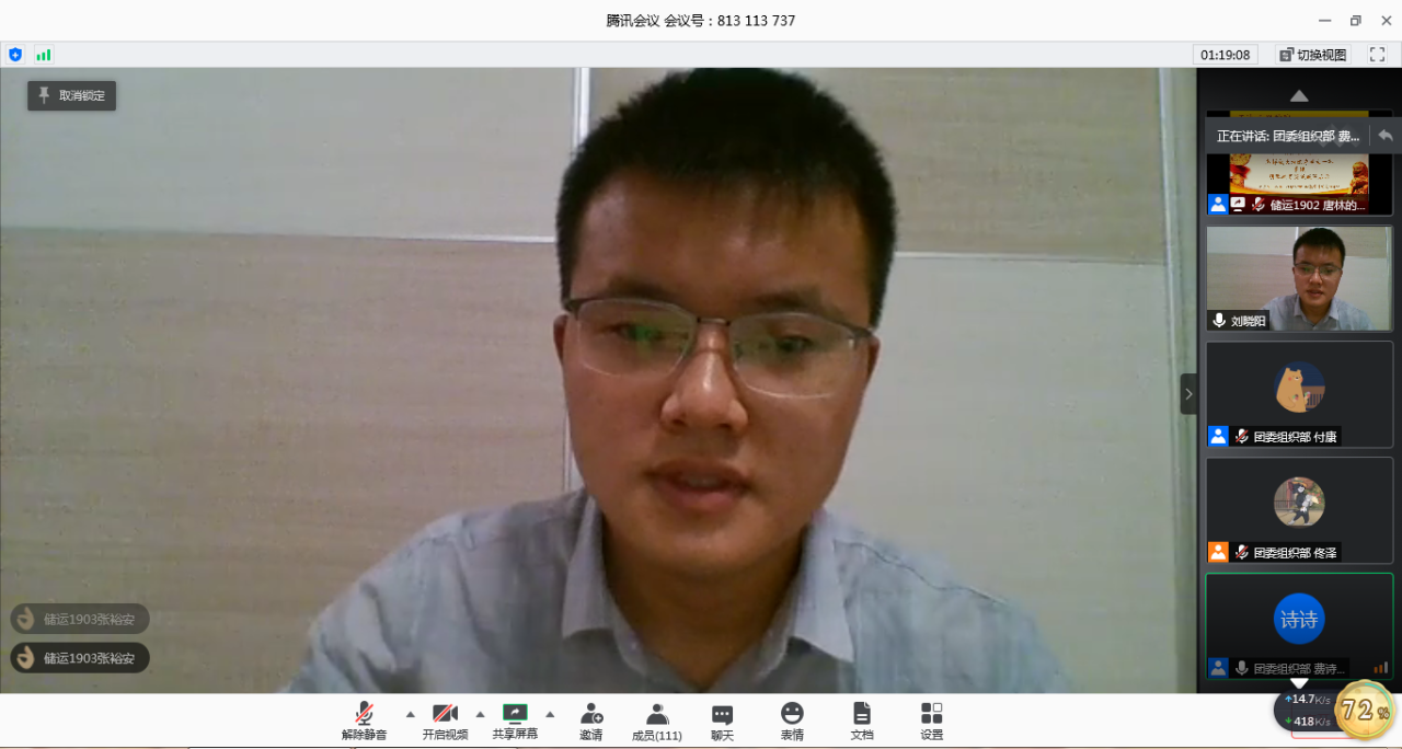 2018级辅导员刘晓阳老师为参训学员讲授了题为“怎样成长为优秀学生干部兼谈朋辈教育实践成果启示”的培训。本次活动采取网络授课的形式,收获了良好了效果。