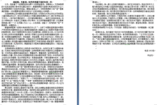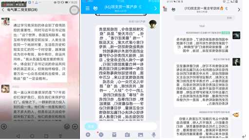 三是各年级学生和各学生党支部党员、预备党员、积极分子纷纷通过撰写学习心得、思想汇报的形式总结个人学习收获,全院累计到普通学生、党员、预备党员和积极分子撰写的心得体会、思想汇报1650余份。同学们纷纷表达了自己作为担当民族复兴大任的时代新人,坚信在党中央领导下我们必将尽早战胜此次疫情的信心和决心,以及通过此次抗疫防疫战争更见坚定“四个自信”的爱国之情。