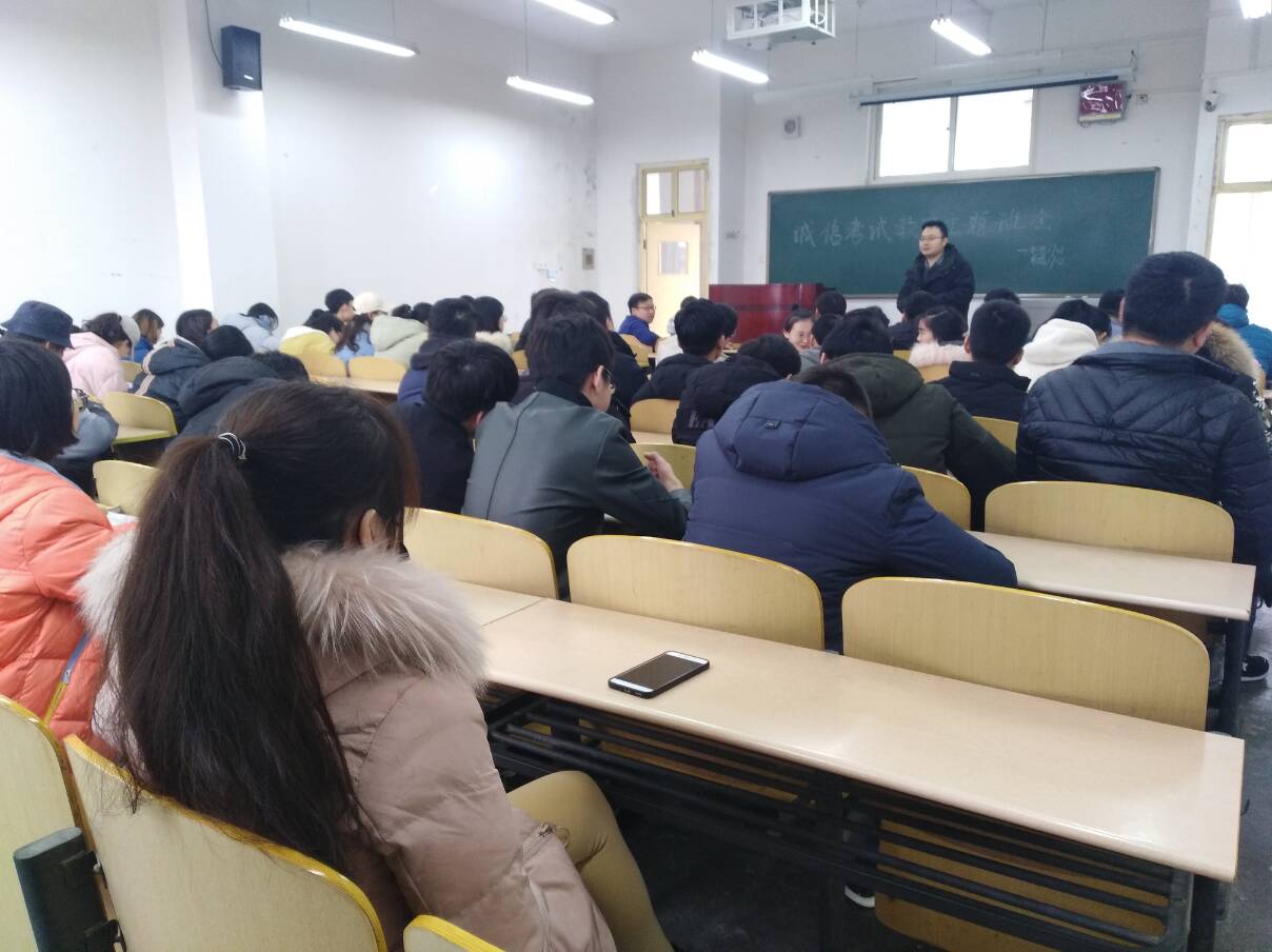 2017级学生召开学风考风推进会议。高建邦老师首先对学生进行诚信教育,提高大学生的诚信应考意识,引导青年学生牢固树立守信光荣、失信可耻的道德观念。随后,高老师对考试纪律规定,违纪处分管理规定等方面做了详细介绍,并通报了近年来因作弊处分的学生情况,让同学们深刻认识到违反制度对自身发展的影响。