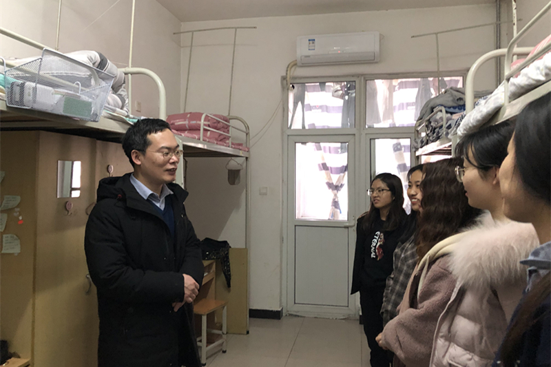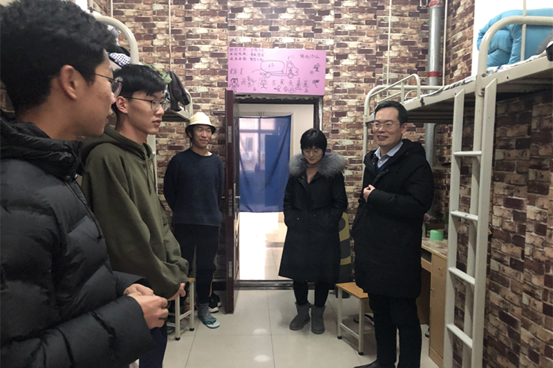 走访过程中张建高副书记与学生们进行亲切交谈,送去节日问候,了解同学们的思想动态以及期末复习情况,同时对同学们进行考风考纪教育并强调了考试纪律问题。各年级辅导员老师亲切提醒学生做好期末复习备考,争取获得优异成绩。