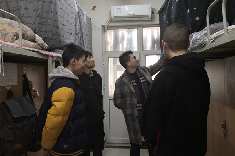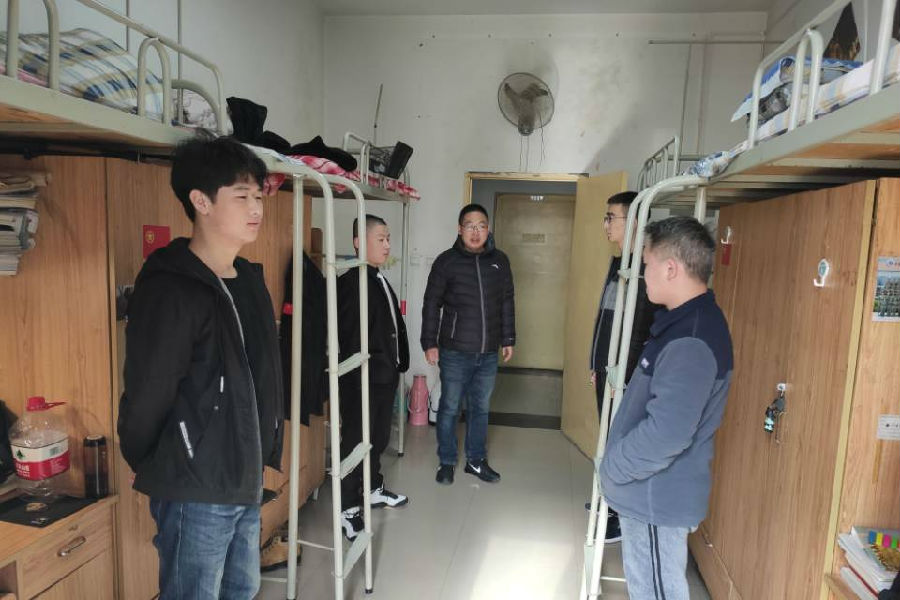 党委副书记张建高带领各年级辅导员深入学生宿舍开展节前安全检查工作。