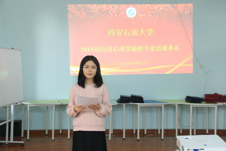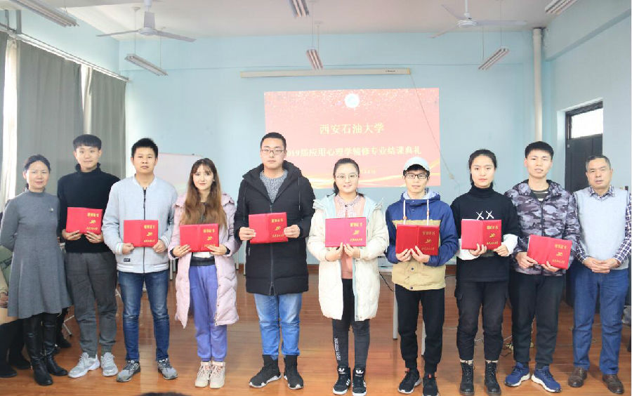 2019届应用心理学辅修专业结课典礼在鄠邑校区人文经管楼427举行。教务处副处长易和平、学生心理成长指导中心全体教师、应用心理学辅修专业学生代表50余人参加。