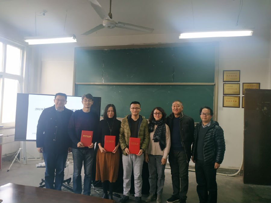 党总支书记李渊宣布蒋瑞雪荣获一等奖、王磊和张振军荣获二等奖。