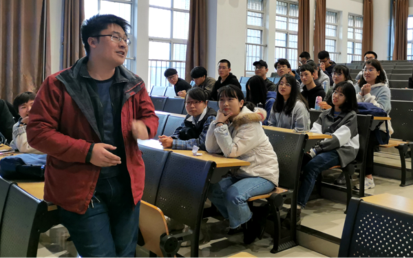 付甲老师、曹伟锋老师、霍苗老师、李凯老师、王雷老师等分别回答了大家关心的考研、择业等各种问题。在近两个小时的互动交流过程中,现场气氛十分热烈,充满了欢声笑语和积极向上的正能量,使同学们深受鼓舞和教育。