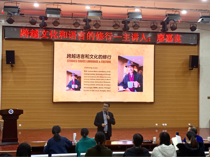 "学术诚信活动月"系列讲座暨第13期学术沙龙在鄠邑校区人文经管楼118如期举行。本次讲座的主讲人廖嘉良博士,他为汉语国际教育专业研究生做了题为“跨越文化的语言和修行”的精彩演讲。讲座由黄庆丰副院长主持。