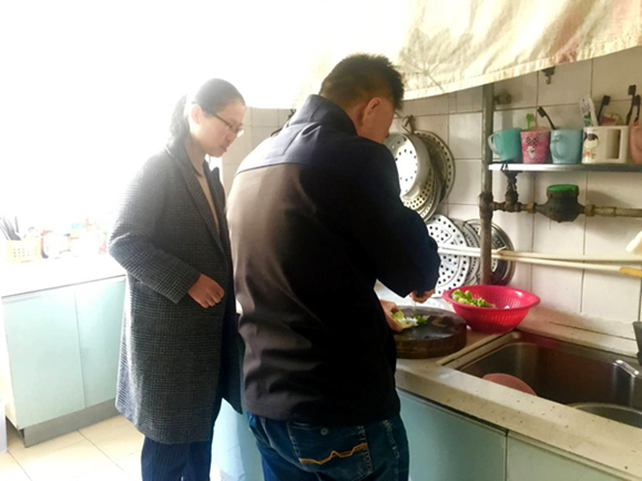 建校初期钟振伟教授的爱人,63年前,老人与700余名湖南老乡,从长沙来到西安,支援陕西建设。支部为彭老师送去了牛奶和水果,在一个半小时的活动中,大家全面了解了彭老师当前生活的方方面面,许天旱教授在彭老师家厨房一展刀工,为彭老师做了备菜工作。交谈过程中,彭老师思路清晰,言谈之中处处不忘党的恩情,句句传递着正能量,她衷心感谢党的关心,感叹当今社会的种种好处与温暖。