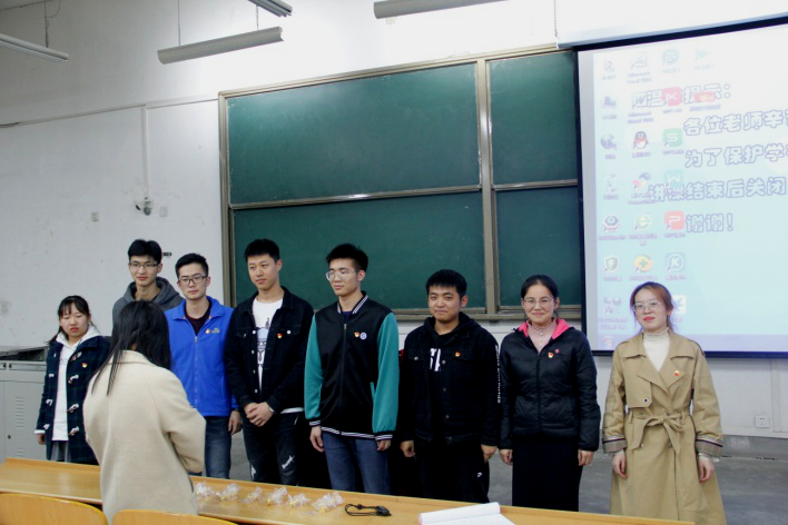 最后,张阳老师为每位党员颁发了一枚代表着党员身份的“为人民服务”徽章,她希望大家能够以此来约束自己,在以后的学习生活中积极发挥先锋模范作用。