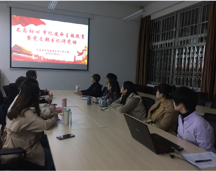 党委副书记王业青、英语系系主任钟泽波、英语系学生党支部书记张帆以及英语系学生党支部全体党员参加。