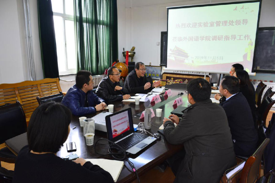 11月5日上午,实验室管理处处长张君涛、副处长陈子恒一行4人来外国语德州扑克