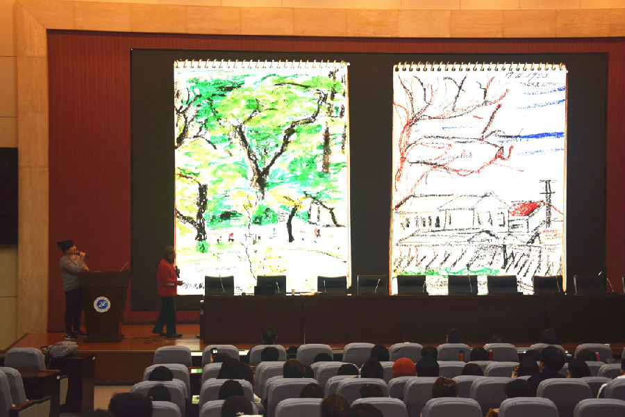 丸山欣也教授用回忆录的方式为学生打开了一个全新的设计世界。随即他强调大家要对身边事物及时记录,了解建筑的价值存在,他表示自己用速写记录了日本当时社会变化和重大事件以及文化的改变,由此鼓励年轻人应多出去旅行,去接触和自己价值观相同的人,去了解和记录国家的文化精髓。活动末尾,学生们踊跃向教授提问,丸山欣也教授对每一个问题耐心解答。讲座结束,李院长对讲座总结时表示:“人不仅要读万卷书,更要行万里路,积沙成塔!”