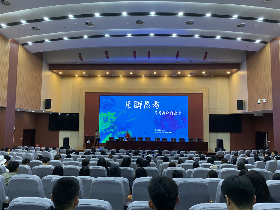 于弘石报告厅开展了人文大讲堂专家学者进校园系列讲座之《用脚思考-不可思议的设计》,全院400名同学参与此次活动。