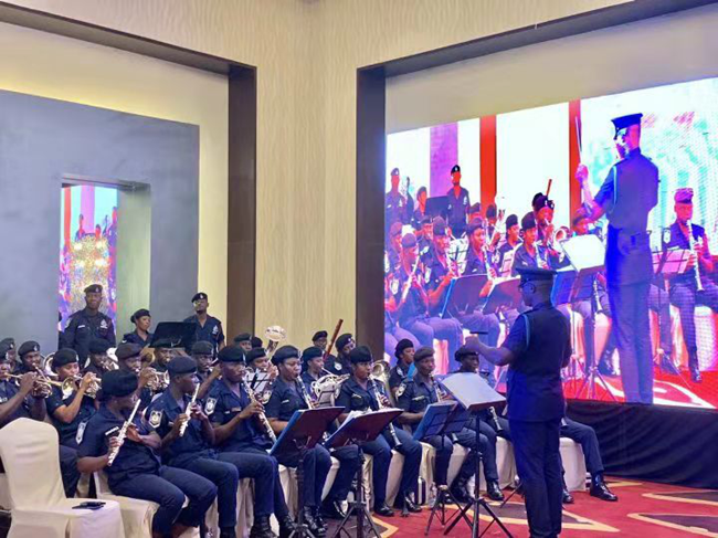 使馆在招待会现场举办了“庆祝中华人民共和国成立70周年主题国际巡展”,76张精美、大幅照片展示了新中国成立以来所走过的光辉发展历程。