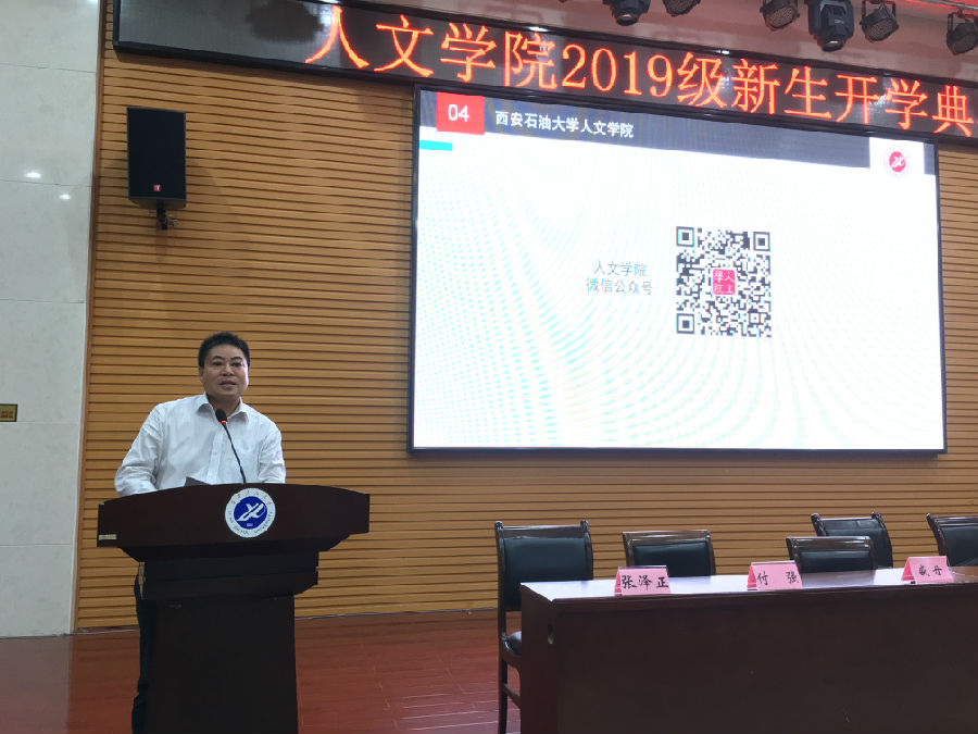 2019级新生开学典礼在人文经管楼118举办,党委书记余小勇、院长李涛教授、副书记盛丹、副院长黄庆丰及中文系主任柯卓英教授、设计系主任曹盼宫老师、学生管理办公室全体辅导员等参加了本次典礼。典礼由德州扑克
