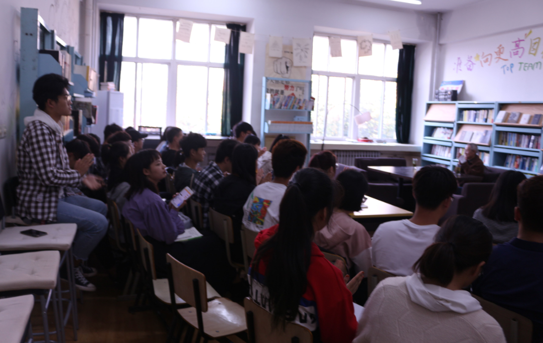 退休老教授汉泽西担任主讲嘉宾,会议由院学生管理办公室主任周毅华主持,辅导员钱宇航以及2018级优秀学生代表50余人共同参加了本次座谈会。此次座谈会以帮助同学们“明确未来目标”为主要目的,希望可以让同学们在新的学期里有更好的作为。
