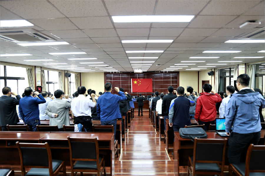 宣誓现场,中华人民共和国国旗居中布置,国旗醒目、庄重。地球科学与工程德州扑克