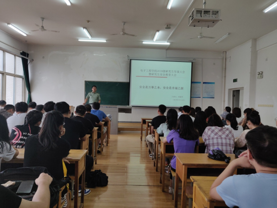在鄠邑校区C3实验楼419教室举行2019级研究生年级大会暨安全教育大会,学生管理办公室主任周毅华,2019级全体研究生参加了本次会议。