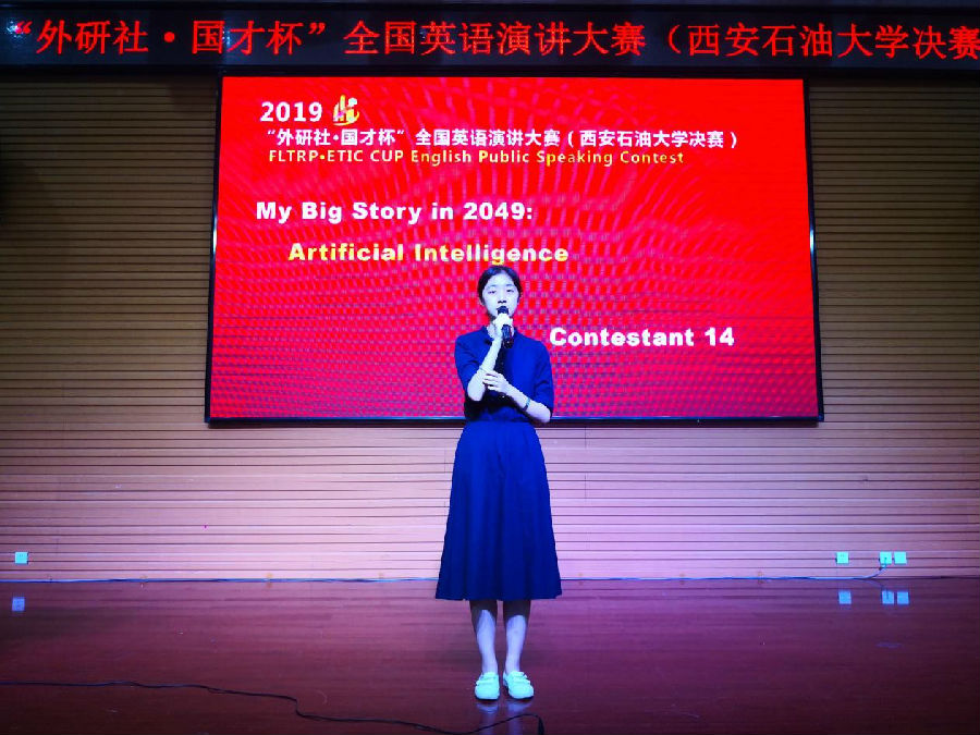 党委致辞。随后参赛选手们围绕“My Big Story in 2049”展开为时三分钟的精彩演讲,并回答评委老师针对演讲内容提出的问题。比赛过程中,选手们激情澎湃、神采飞扬,他们凭借扎实的知识功底、广阔的视野、从容不迫的应变能力以及标准流畅的口语表达赢得观众和评委老师们的阵阵掌声。