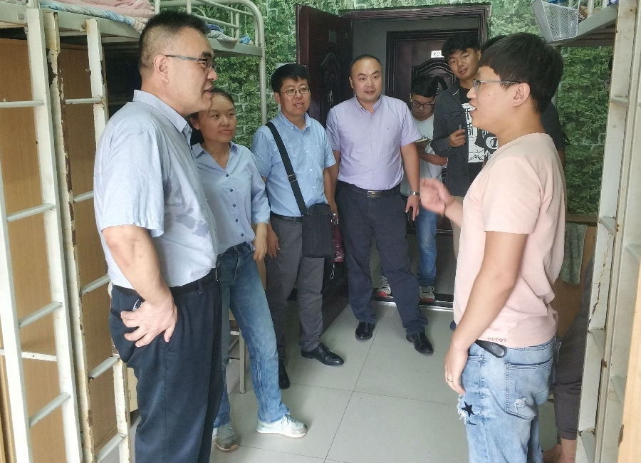 党委书记田党宏,党委副书记刘笛,团委书记、学管办主任文爱国深入走访毕业生宿舍,2015级辅导员邵小康、欧红娟陪同。