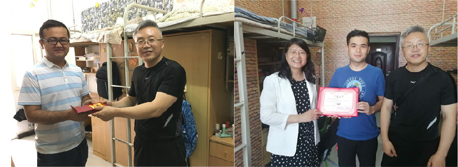 化工、能化、应化、环境等各专业宿舍,受到了毕业生的热情欢迎,大家就毕业生在校近况、离校安排、就业去向及今后打算等进行了现场交流。听闻化工专业阿迪力·吾买尔主动投身西部计划,将赴南疆和田一线就业,应化专业杨佳晖志愿参军选择毕业入伍,司马书记对他们积极响应国家号召,志愿投身国防、扎根边疆给予高度评价,并送上了刻有专属姓名的原油印章毕业礼物,希望他们能扎根基层,积极进取,为服务祖国、服务地方做出自己应有的贡献。环境专业依布拉音同学在校期间积极参加各项民族团结教育活动,并在德州扑克