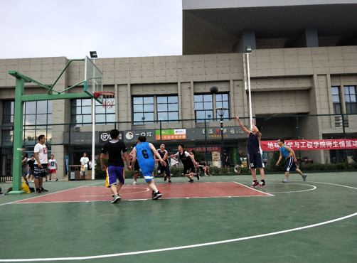 赛场上,双方展现出强劲的实力,学生队灵活,教师队稳重,你投一个三分,我打回一个快攻,场面激烈。经过五节比赛,最后教师队与学生队以103:114的比分愉快结束。此次比赛,老师们表示:“学生在体育运动中展示出的自加压力、拼搏奋进的精神正是我们地学领域学习工作所需要的。”
