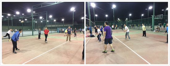 资深排球队长杜小武老师给排球新星尹志国做了半个小时的特别训练。大家酣畅淋漓地在运动场度过一个愉快的周末之夜!