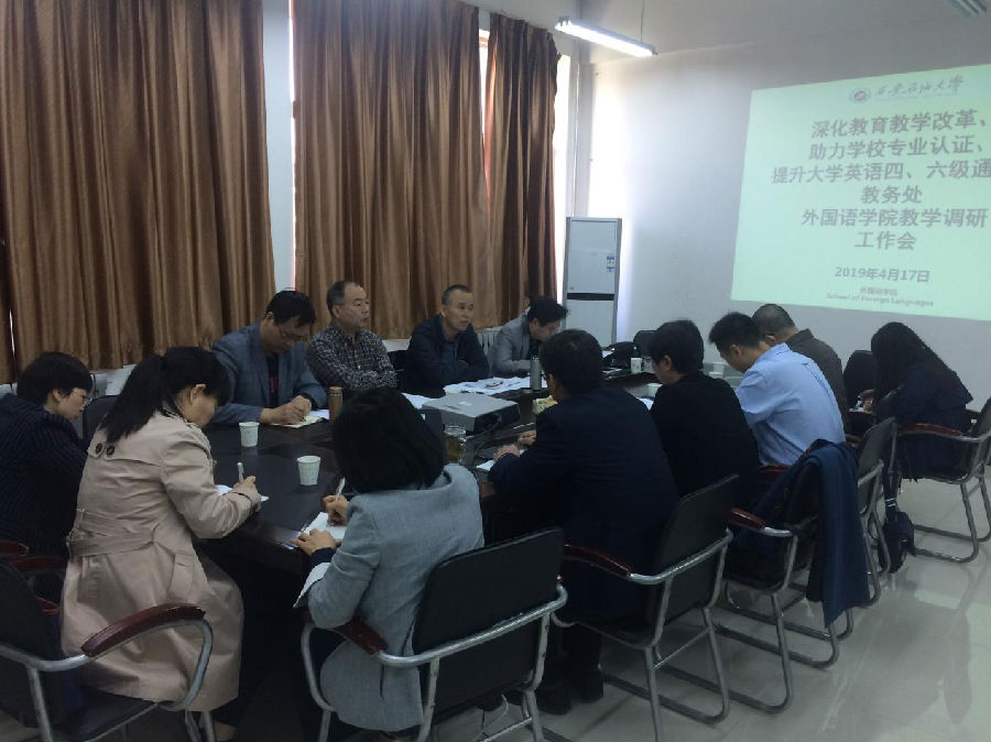 就开展本科教学进行调研。教务处处长徐学利,副处长易和平、张益陪同参加。调研会由徐学利处长主持。外国语德州扑克