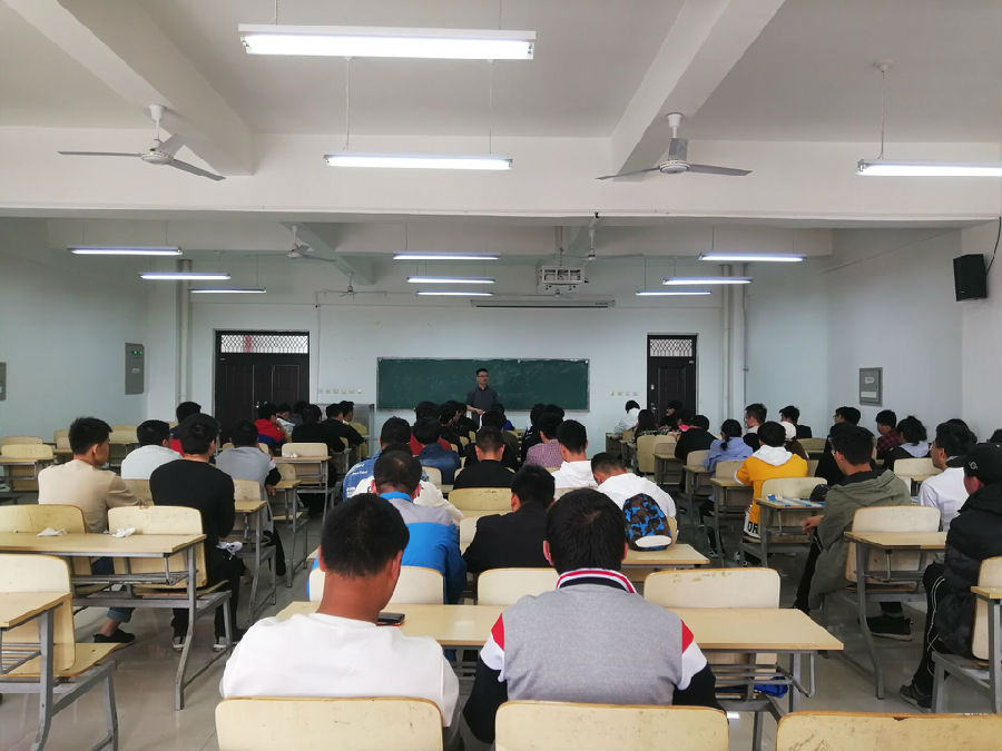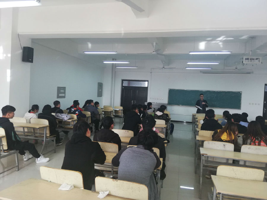 2018级于新校区1号院系楼323教室分专业分批召开学风教育大会,会议由2018级辅导员主持。