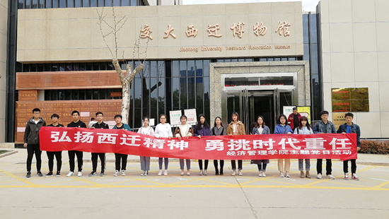 “弘扬西迁精神,勇挑时代重任”主题党日活动于西安交通大学西迁博物馆开展。辅导员陆晓寒老师、学生党员代表、学生党建干部近20人参加。