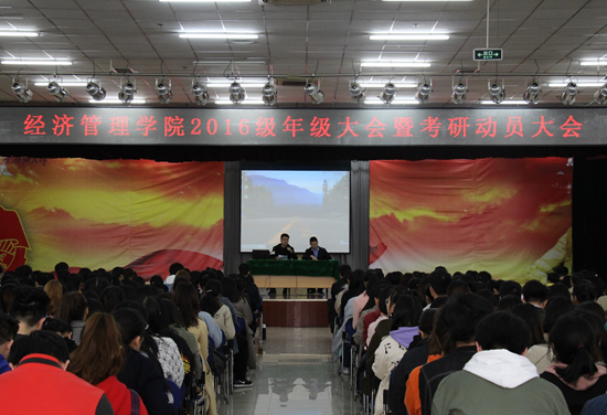 2016级年级大会暨考研动员大会在鄠邑校区腾辉大学生活动中心召开。考研辅导专家王思阳老师、李茸老师出席,辅导员武威老师、孙剑秋老师与2016级600余名学生参加。
