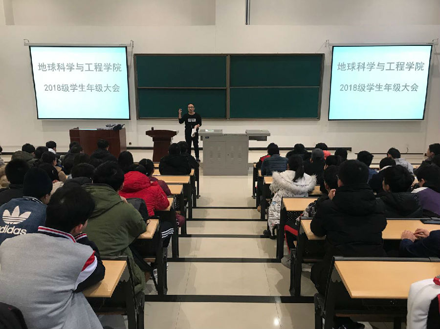 在鄠邑校区石工地科楼115教室召开2018级年级大会。辅导员李化杰老师主持会议, 2018级全体同学参加本次大会。