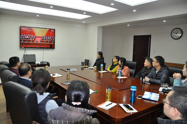 114会议室集中收看大会直播盛况。