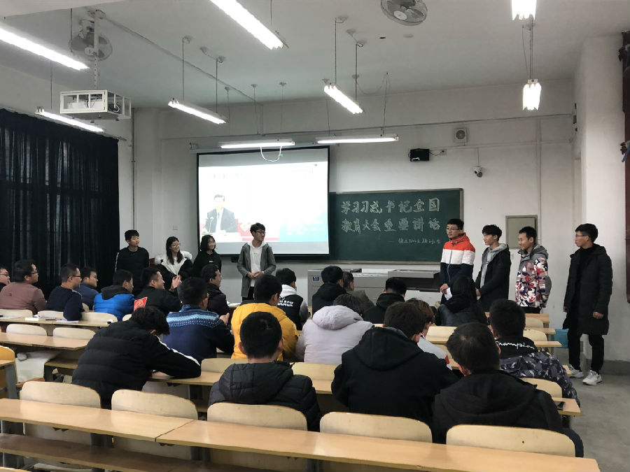 在鄠邑校区A109成功举行学习习近平总书记全国教育大会重要讲话示范性主题班会。出席本次班会的有石油工程德州扑克